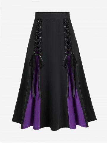 Halloween Vampire Costume Gothic Lace Up Two Tone Godet Hem Midi A Line Victorian Walking Skirt - Purple - S | Us 8