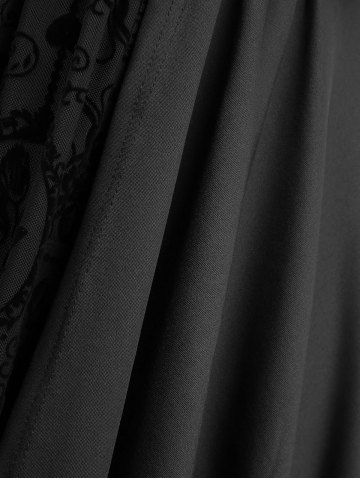 Plus Size Flowers Flocking Heart Buckle High Low Split Suspender Skirt - Black - M | Us 10