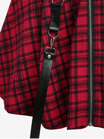 Gothic Plus Size Plaid Print Moon Zipper Suspender Skirt - Red - 1x | Us 14-16