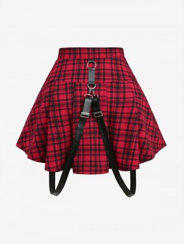 Gothic Plus Size Plaid Print Moon Zipper Suspender Skirt - Red - 4x | Us 26-28
