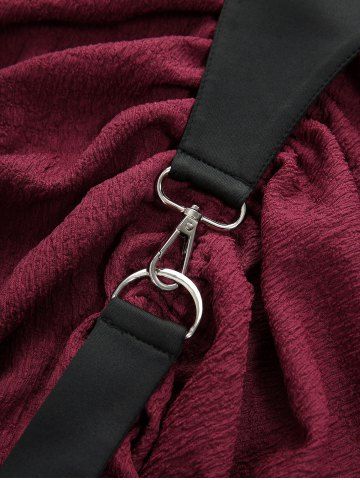 Gothic Plus Size Ruffles Grommets Buckle Steampunk Plisse Skirt - Deep Red - 1x | Us 14-16