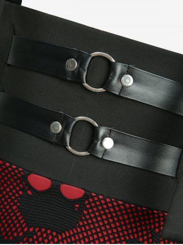 Gothic Skull Fishnet Overlay High Low Asymmetric A Line Suspender Skirt - Black - L