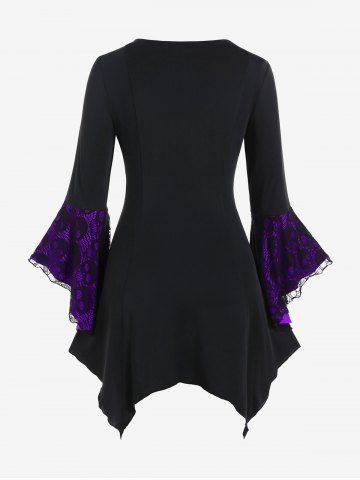 l*****a5Plus Size Skulls Mesh Panel Bell Sleeves Twist Lace Up Asymmetrical 2 In 1 TopColor: BLACK Size: L | US 12Gorgeous love it fit is great 38DDD curvy