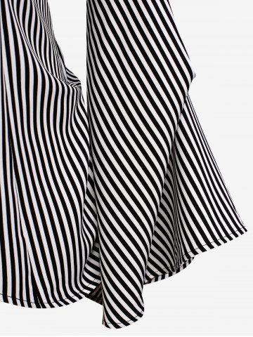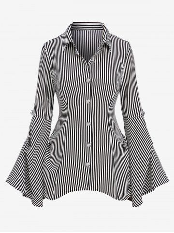 Gothic Button Striped Back Ruched Lace Up Flare Sleeves Shirt - Black - 1x | Us 14-16