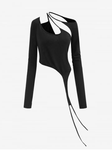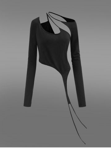 Alternative & Gothic Tops > Gothic Cutout Panel Thumbhole Asymmetric Solid T-shirt