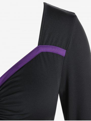 Gothic Plus Size Flare Sleeves Lace Up Two Tone Handkerchief Top - Purple - 5x | Us 30-32