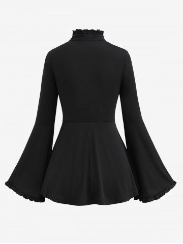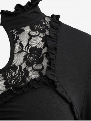 Gothic Floral Lace Panel Lace Up Ruched Keyhole Flare Sleeves Asymmetric Corset T-shirt - Black - 1x | Us 14-16