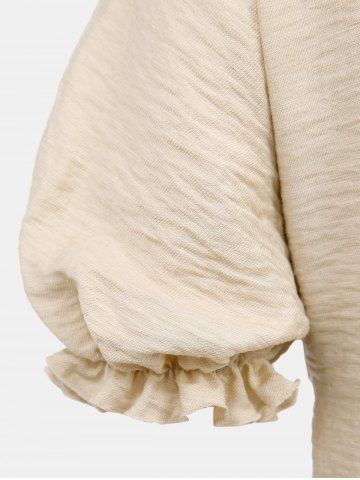 Gothic Puff Sleeves Ruffles Neck Full Buttons Solid Textured Cropped Top - Light Coffee - 1x | Us 14-16