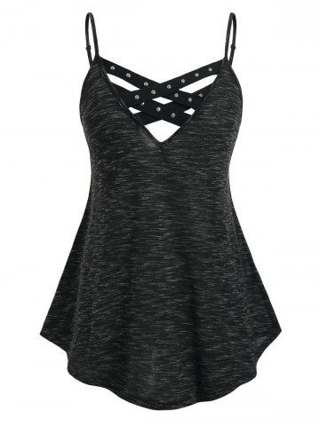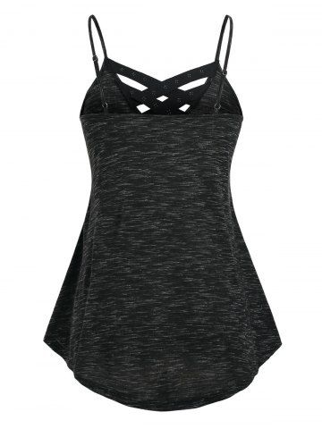 h*****l5Plus Size & Curve Strappy Crisscross Flowy Tank TopColor: BLACK Size: M | US 10Runs a little large I would recommend ordering 1 size down. Super cute and comfortable. I really like how it flows. The back drapes lower then normal tank tops. It does not cling to you it moves freely. Overall really enjoy it and i wear it often. I ordered in a medium.