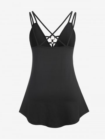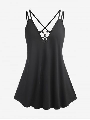 h*****l5Plus Size & Curve Strappy Crisscross Flowy Tank TopColor: BLACK Size: M | US 10Runs a little large I would recommend ordering 1 size down. Super cute and comfortable. I really like how it flows. The back drapes lower then normal tank tops. It does not cling to you it moves freely. Overall really enjoy it and i wear it often. I ordered in a medium.