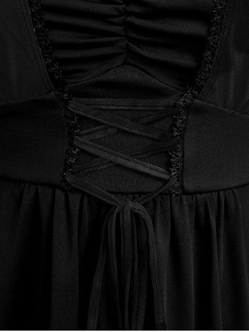 s*****95Plus Size Ink Painting Mesh Flare Sleeves Lace Up Ruched T-shirtColor: LIGHT PURPLE Size: 3X | US 22-24LOVE this shirt. it's hard to keep the string tied up because of the material it is made out of but it is so nice and so comfortable 😌 ✨️ ☺️ 💕