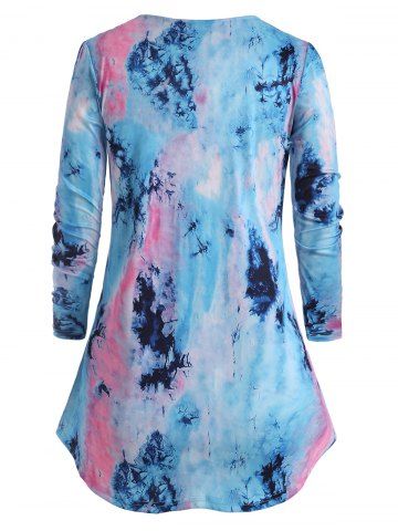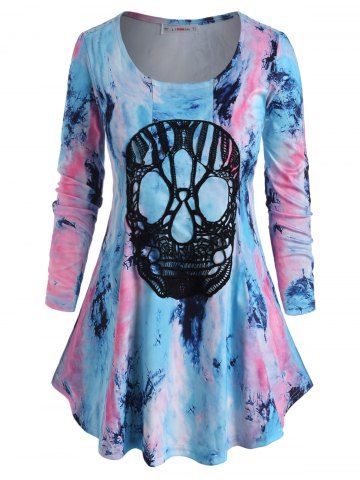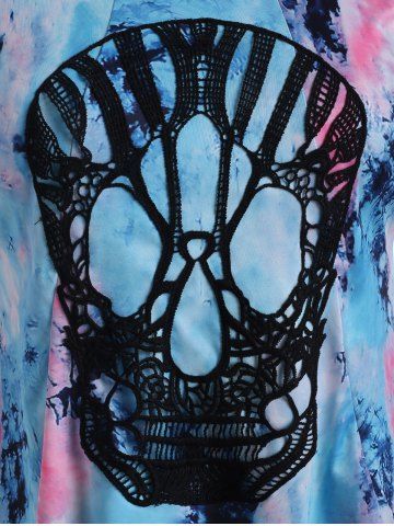 Plus Size Lace Skull Tie Dye Halloween T Shirt - Light Blue - 3x