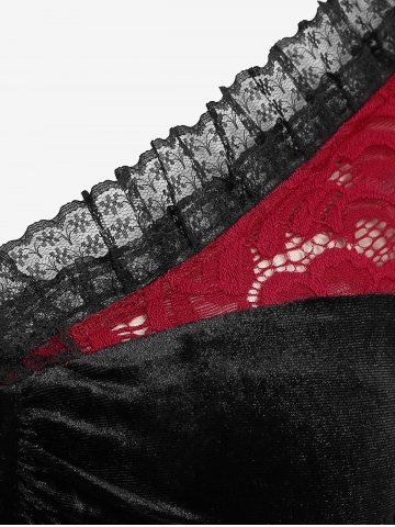 d*****15Gothic Plus Size Lace-up Cinched Ruched Lace Trim Velvet Flare Sleeves TopColor: BLACK Size: 1X | US 14-16très satisfaite de mon achat. tissus et forme très sympas