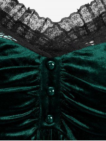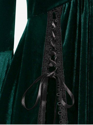 Gothic Plus Size Lace-up Cinched Ruched Lace Trim Velvet Flare Sleeves Top - Green - 2x | Us 18-20