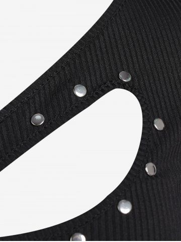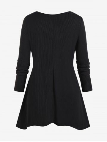 h*****y4Plus Size Ribbed Cutout Rivet Uneven Hem Tunic TeeColor: BLACK Size: 5XThis top is very comfortable if just a little too short. It is is a breathable fabric, fits well, and I love the cutout asymmetrical detail in front.