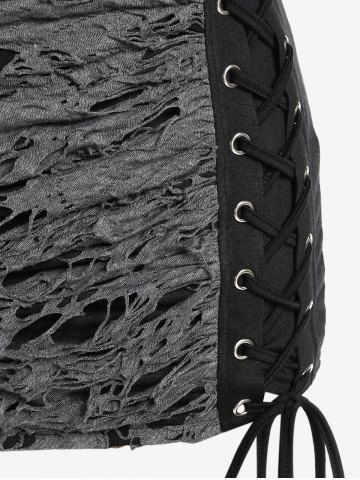 L*****i5Gothic Cutout Lace-up Buckles Cold Shoulder High Low Hooded TeeColor: GRAY Size: L | US 12loving the look, the hood was a nice surprise.