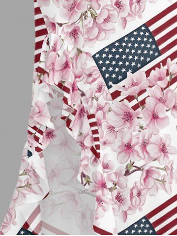Patriotic American Flag Flowers Print Hawaii Ruffles Split Surplice Dress - Light Pink - L