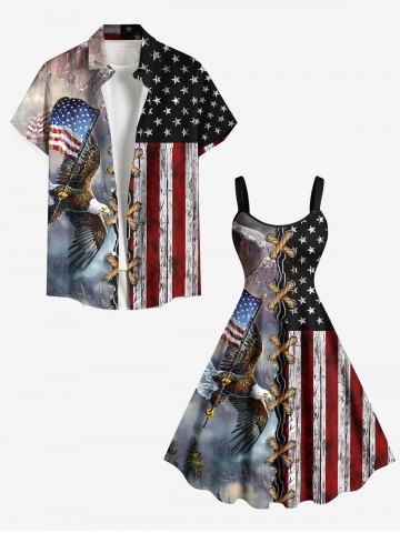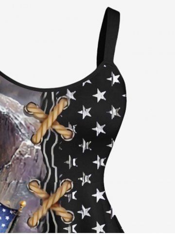 American Flag Dresses > Plus Size 3D Lace Up Patriotic American Flag Eagle Print A Line Tank Dress
