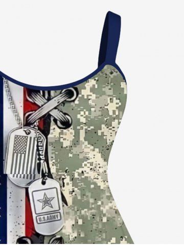 American Flag Dresses > Plus Size American Flag Camouflage 3D Lace Up Print Backless A Line Tank Dress