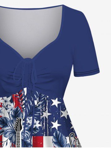 Plus Size American Flag Coconut Leaves Guitar Print Cinched A Line Dress - Multi-a - 1x