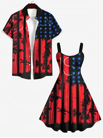 Plus Size American Flag Ink Painting Coconut Tree Print A Line Tank Dress - Red - 6x
