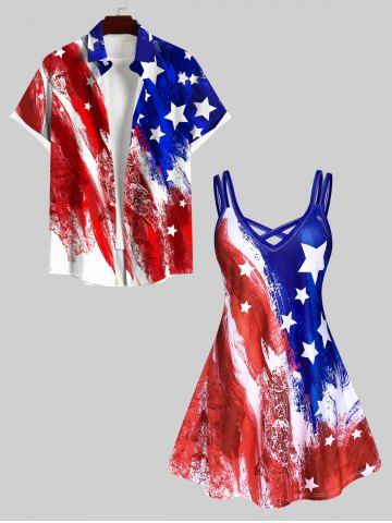 c*****w4Plus Size American Flag Patriotic Crisscross A Line Sleeveless DressColor: MULTI-A Size: 4X | US 26-28very patriot!! very comfortable . I'm 5'2 . 250lb and 44DDD With a 50 in waist. it fit perfectly except the straps. I will have to pull them in about 5 inches on each side. be really nice if it had adjustable straps but it doesn't. comes just at knee on me until I can take in the straps 5inches. then above the knee it will be.