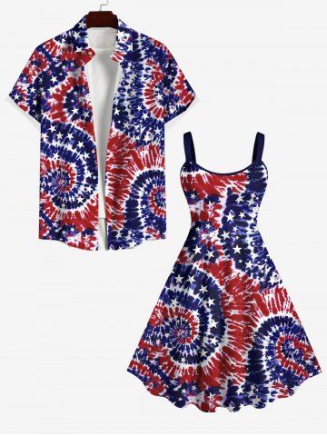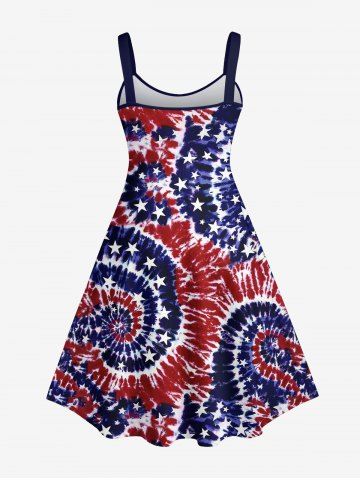 Plus Size American Flag Spiral Tie Dye Print Hawaii Tank Dress - Blue - Xs