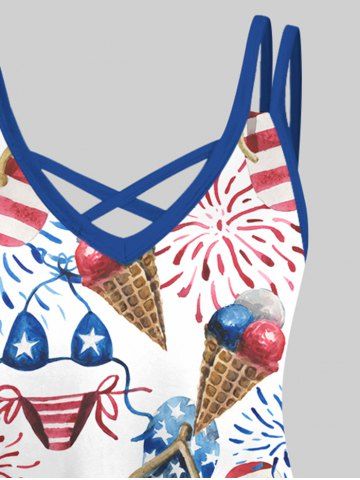 American Flag Dresses > Hawaii Plus Size Bikinis Fireworks Ice Cream Print Crisscross A Line Cami Dress