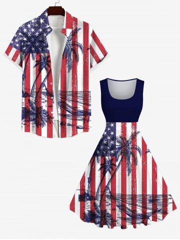 American Flag Dresses > Plus Size Coconut Tree Sea American Flag Striped Print Hawaii 1950s Vintage A Line Dress