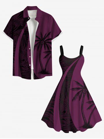 Coconut Tree Tropical Leaf Print Plus Size Matching Hawaii Beach Outfit For Couples