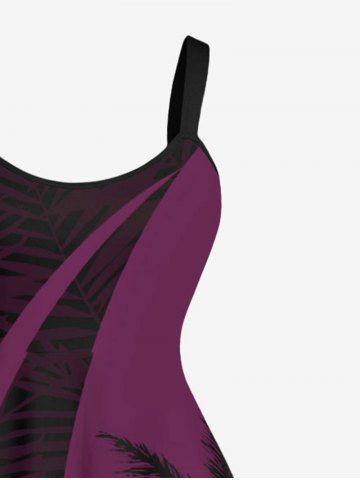 Plus Size Coconut Tree Tropical Leaf Print Hawaii Tank Dress - Deep Red - Xs