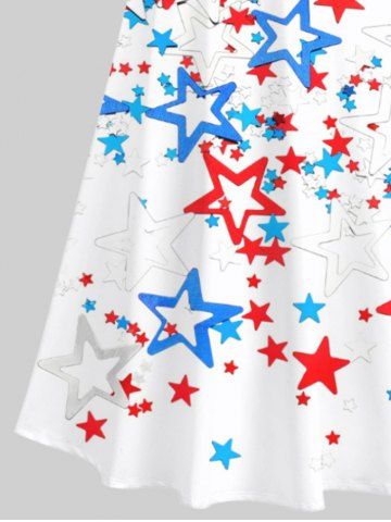 American Flag Dresses > Plus Size Cold Shoulder Colorful Stars Patriotic American Flag Print Crisscross A Line Dress