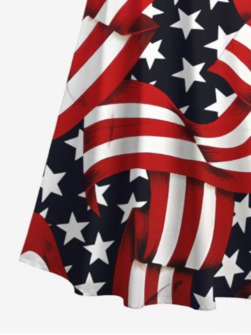 American Flag Dresses > Plus Size Cold Shoulder Striped Ribbon Patriotic American Flag Print Crisscross A Line Dress