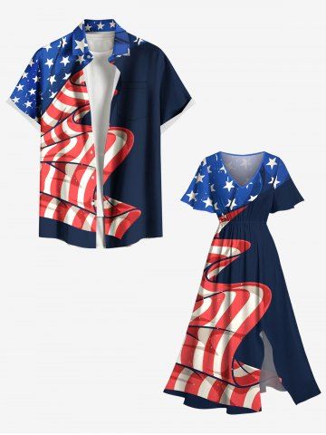 Plus Size Crinkle Patriotic American Flag Print Split Pocket A Line Midi Dress - Black - 2x