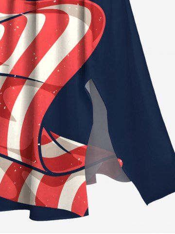 Plus Size Crinkle Patriotic American Flag Print Split Pocket A Line Midi Dress - Black - 5x