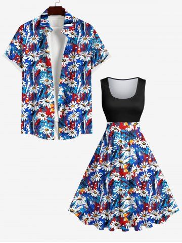 American Flag Dresses > Plus Size Daisy Flower Oil Painting Print Hawaii 1950s Vintage Dress