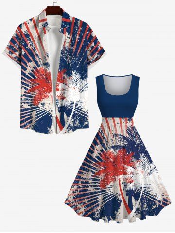 American Flag Dresses > Plus Size Distressed Coconut Tree Patriotic American Flag Light Beam Tie Dye Print 1950s Vintage Swing A Line Dress