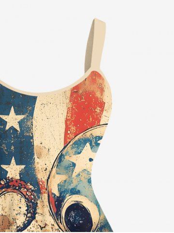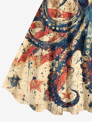 Plus Size Distressed Octopus Patriotic American Flag Print Hawaii A Line Tank Dress - Light Coffee - 3x