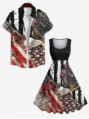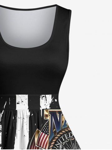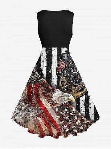 Plus Size Eagle Patriotic American Flag Print Vintage A Line Swing Dress - Black - 2x