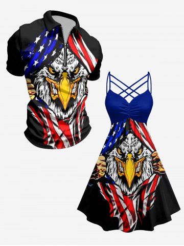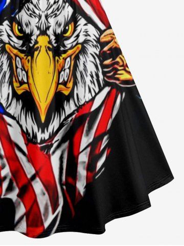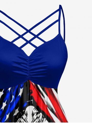 Plus Size Eagle Ripped Patriotic American Flag Print Ruched Crisscross Strappy A Line Dress - Black - 1x