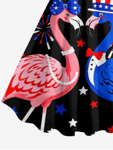 Plus Size Flamingo Patriotic American Flag Print Hawaii A Line Dress - Black - M