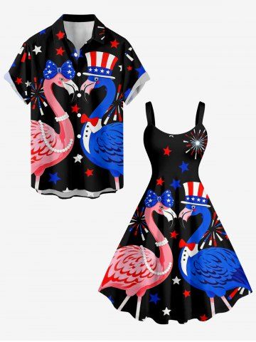 Plus Size Flamingo Patriotic American Flag Print Hawaii A Line Dress - Black - 4x