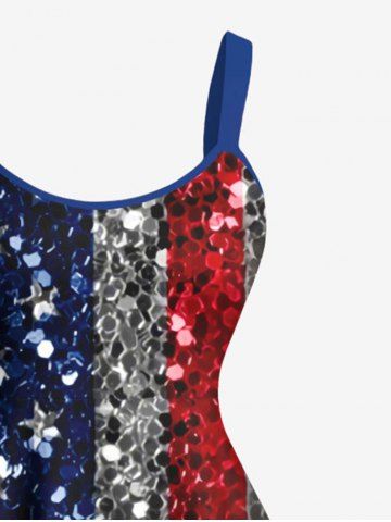 American Flag Dresses > Plus Size Glitter Sequins Patriotic American Flag Print A Line Tank Dress