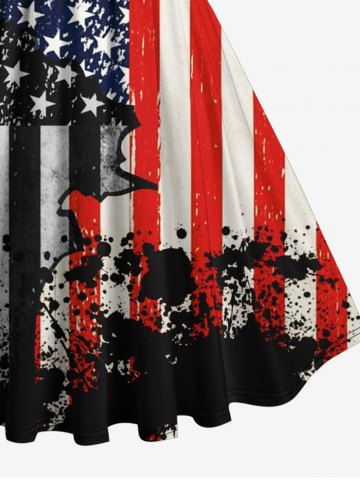 Plus Size Ink Painting Splatter Distressed American Flag Print 1950s Vintage Swing A Line Dress - Multi-a - 5x