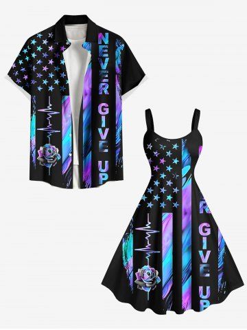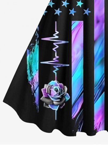 Plus Size Ombre Striped Letter Rose Flower Patriotic American Flag Print A Line Tank Dress - Black - M