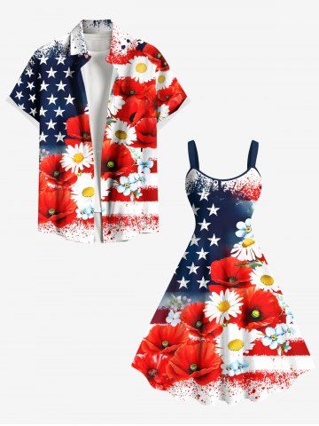 Plus Size Painting Splatter Patriotic American Flag Flower Print Hawaii A Line Tank Dress - Red - S