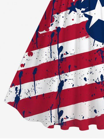 American Flag Dresses > Plus Size Painting Splatter Patriotic American Flag Print 1950s Vintage Swing A Line Dress
