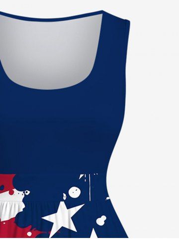 American Flag Dresses > Plus Size Painting Splatter Patriotic American Flag Print 1950s Vintage Swing A Line Dress