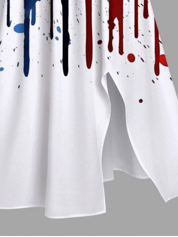 Plus Size Painting Splatter Patriotic American Flag Print Split Pocket A Line Midi Dress - White - Xs