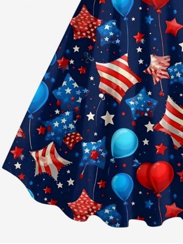 Plus Size Patriotic American Flag Balloon Star Print A Line Dress - Deep Blue - S